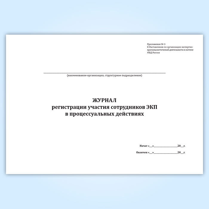 Журнал регистрации участия сотрудников ЭКП в процессуальных действиях в Бердске купить