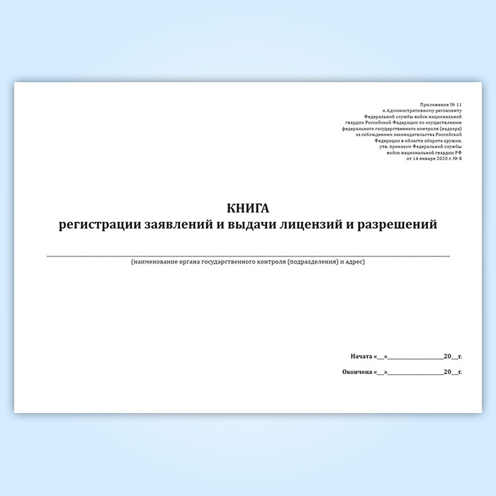 Книга регистрации заявлений и выдачи лицензий и разрешений (Приказ Росгвардии от 14.01.2020 N 8) в Бердске купить