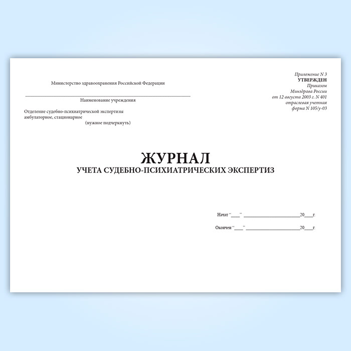 Журнал учета судебно-психиатрических экспертиз (форма 105/у-03) в Бердске купить
