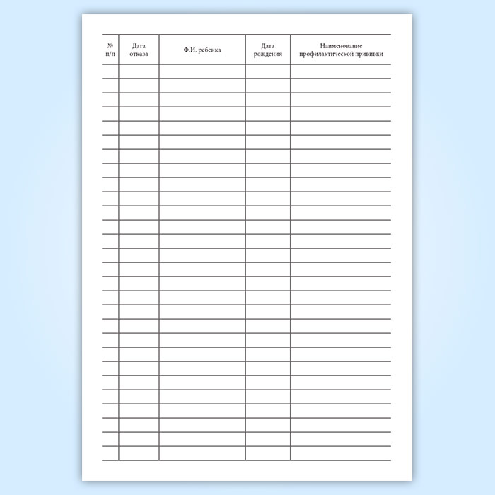 Журнал регистрации отказов от профилактических прививок в Бердске купить