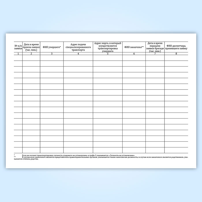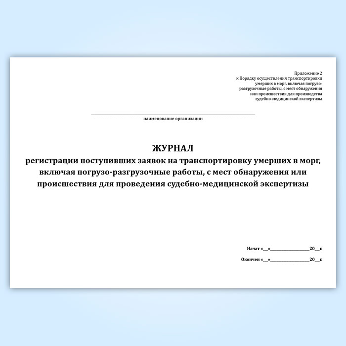 Журнал регистрации поступивших заявок на транспортировку умерших в морг, включая погрузо-разгрузочные работы, с мест обнаружения или происшествия для проведения судебно-медицинской экспертизы в Бердске купить