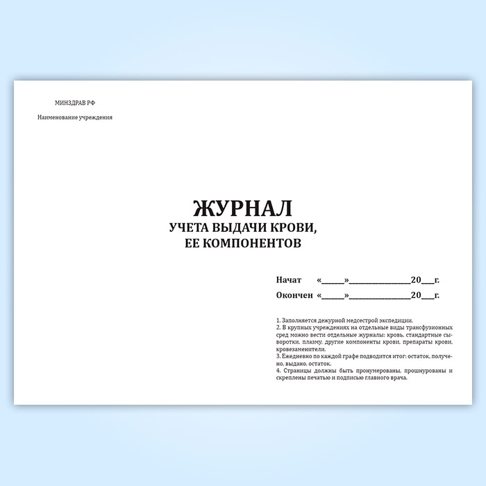 Журнал учета выдачи крови, ее компонентов в Бердске купить