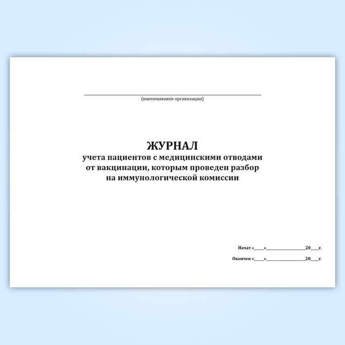 Журнал учета пациентов с медицинскими отводами от вакцинации, которым проведен разбор на иммунологической комиссии в Бердске купить