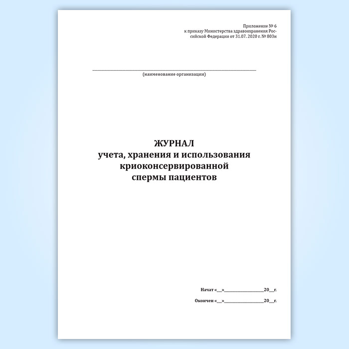 Журнал учета, хранения и использования криоконсервированной спермы пациентов в Бердске купить