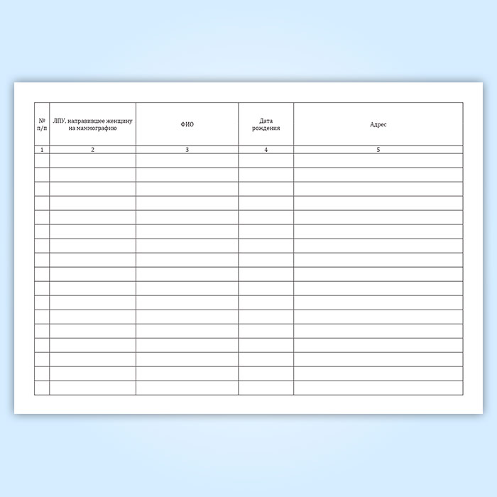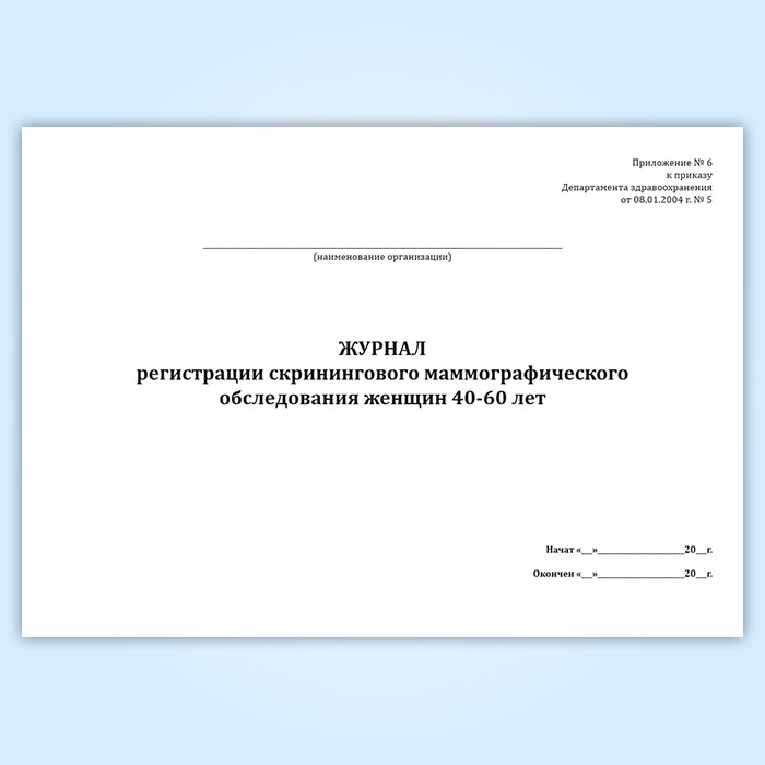 Журнал регистрации скринингового маммографического обследования женщин 40-60 лет в Бердске купить