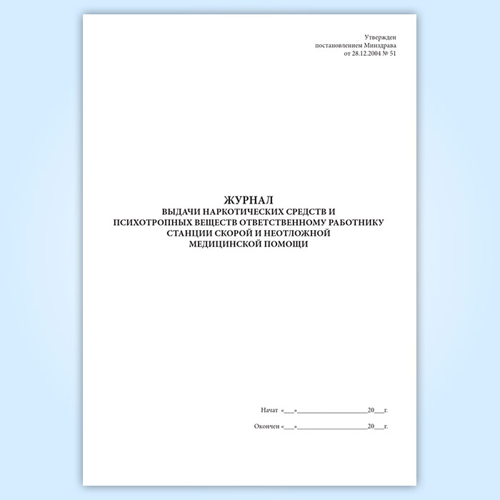 Журнал выдачи наркотических средств и психотропных веществ ответственному работнику станции скорой и неотложной медицинской помощи в Бердске купить