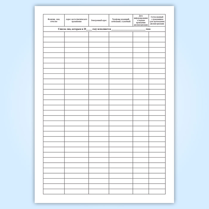 Поименный и повозрастной список граждан терапевтического, в том числе цехового, участка (участка врача общей практики (семейного врача)) в Бердске купить