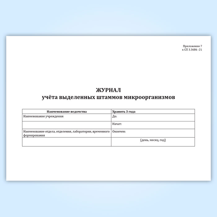 Журнал учета выделенных штаммов микроорганизмов (СанПиН 3.3686-21) в Бердске купить