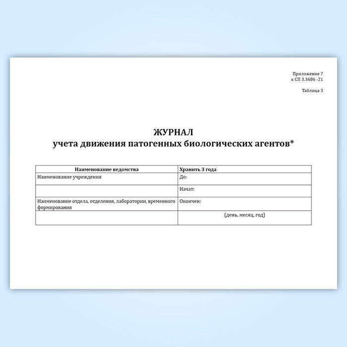 Журнал учета движения патогенных биологических агентов (СанПиН 3.3686-21) в Бердске купить
