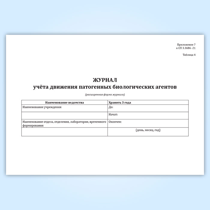 Журнал учета движения патогенных биологических агентов (СанПиН 3.3686-21, расширенная форма) в Бердске купить