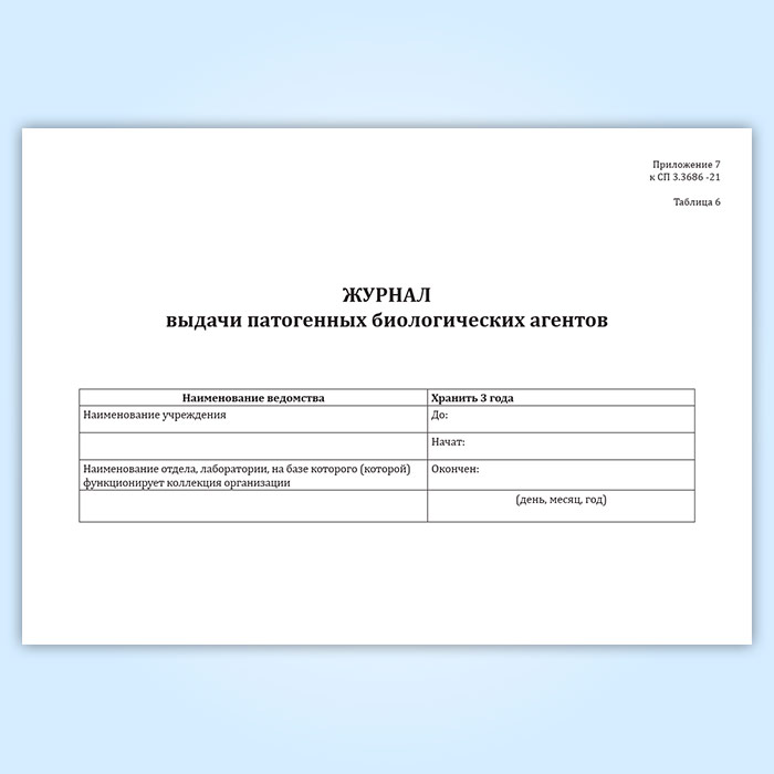 Журнал выдачи патогенных биологических агентов (СанПиН 3.3686-21) в Бердске купить