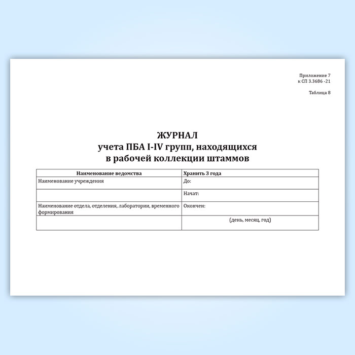 Журнал учета ПБА I-IV групп, находящихся в рабочей коллекции штаммов в Бердске купить