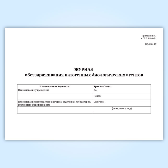Журнал обеззараживания патогенных биологических агентов (СанПиН 3.3686-21) в Бердске купить