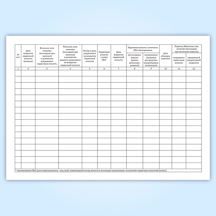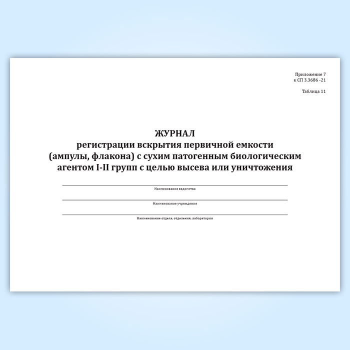 Журнал регистрации вскрытия первичной емкости (ампулы, флакона) с сухим патогенным биологическим агентов I-II групп с целью высева или уничтожения в Бердске купить