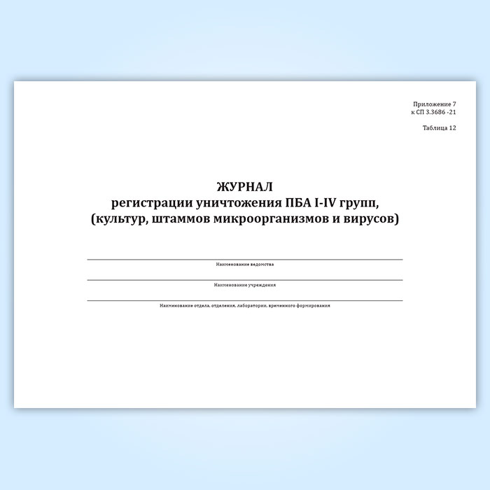 Журнал регистрации уничтожения ПБА I-IV групп, (культур, штаммов микроорганизмов и вирусов) в Бердске купить