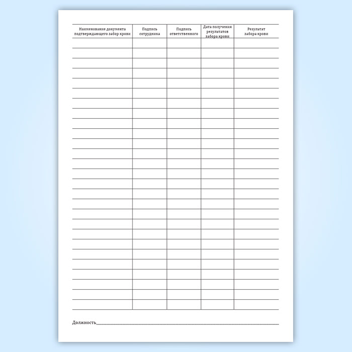 Журнал взятия крови у работников для проведения лабораторного исследования методом иммуноферментного анализа в Бердске купить