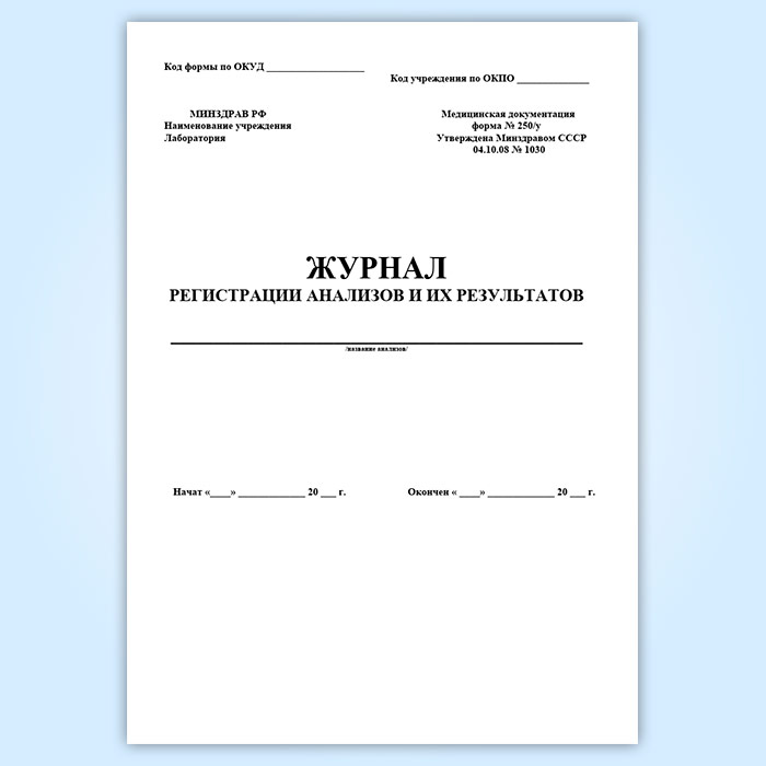 Журнал регистрации анализов и их результатов (форма 250/у) в Бердске купить