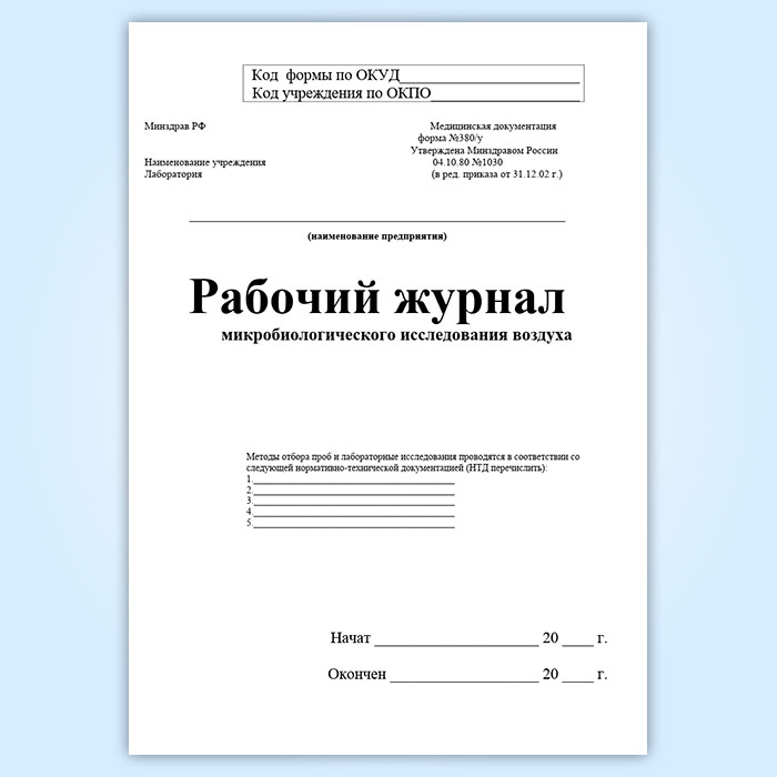 Рабочий журнал микробиологического исследования воздуха (форма 380/у) в Бердске купить