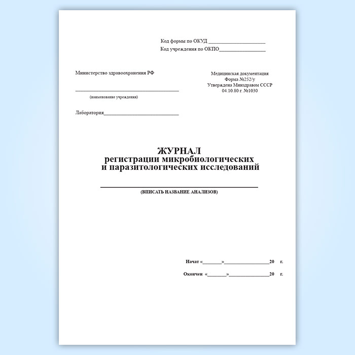 Журнал регистрации микробиологических и паразитологических исследований (форма 252/у) в Бердске купить