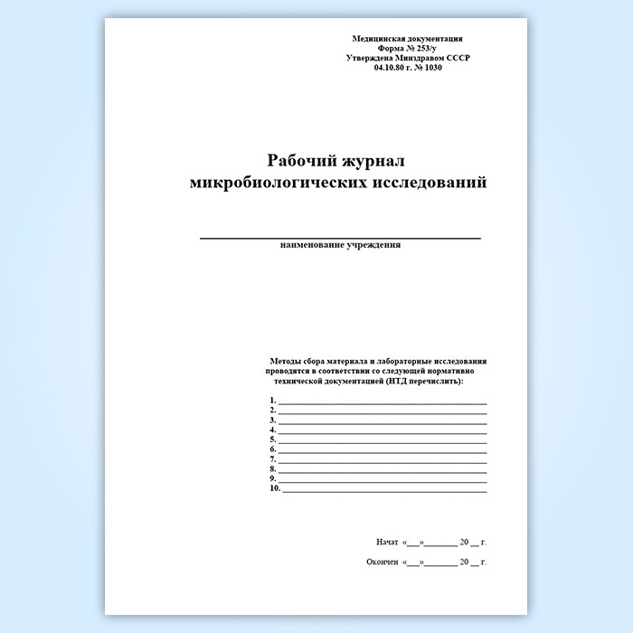 Рабочий журнал микробиологических исследований (форма 253/у) в Бердске купить