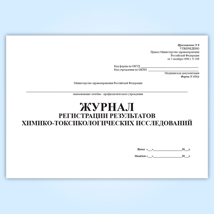 Журнал регистрации результатов химико-токсикологических исследований (форма 453у-06) в Бердске купить
