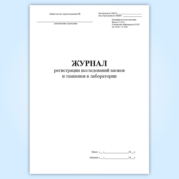 Журнал регистрации исследований мазков и тампонов в лаборатории (форма 185/у) в Бердске купить