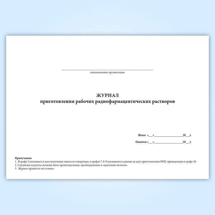 Журнал приготовления рабочих радиофармацевтических растворов в Бердске купить