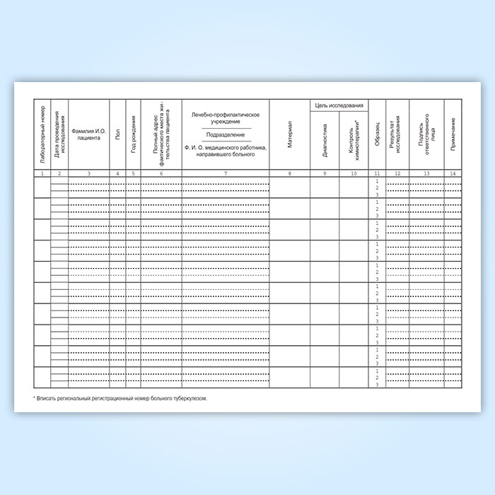 Журнал регистрации микроскопических исследований на туберкулез (форма 04-ТБ/У) в Бердске купить