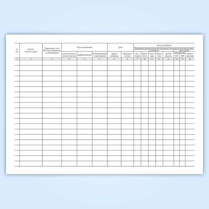Журнал учета серологических исследований на паразитарные заболевания в Бердске купить