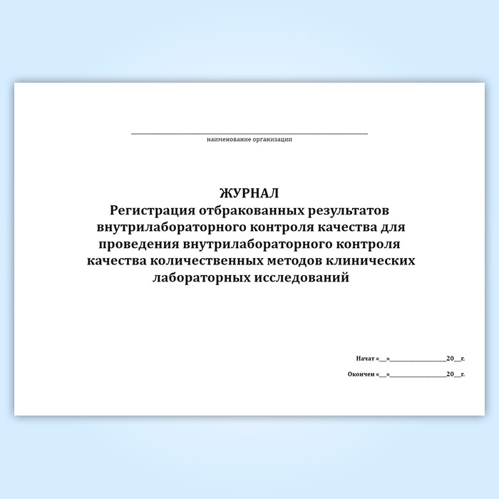 Журнал «Регистрация отбракованных результатов внутрилабораторного контроля качества для проведения внутрилабораторного контроля качества количественных методов клинических лабораторных исследований» в Бердске купить