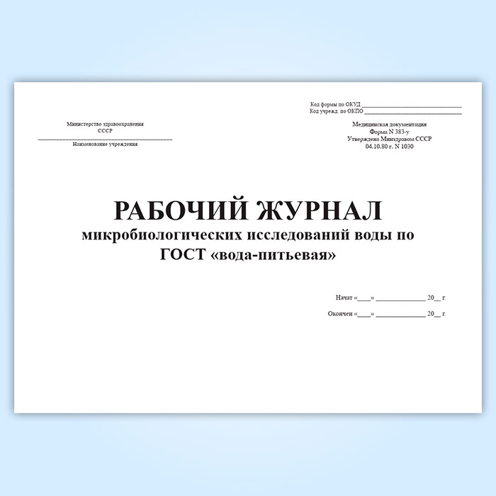 Рабочий журнал микробиологических исследований воды по ГОСТ вода-питьевая (форма 383/у) в Бердске купить