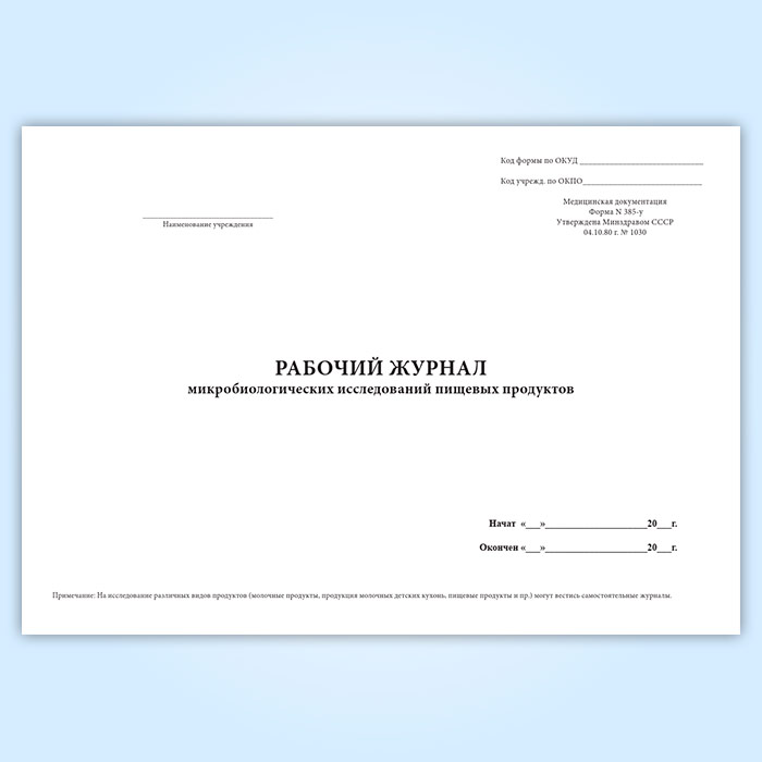 Рабочий журнал микробиологических исследований пищевых продуктов (форма 385/у) в Бердске купить