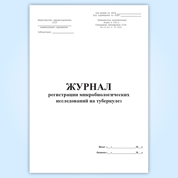 Журнал регистрации микробиологических исследований на туберкулез (форма 255/у) в Бердске купить