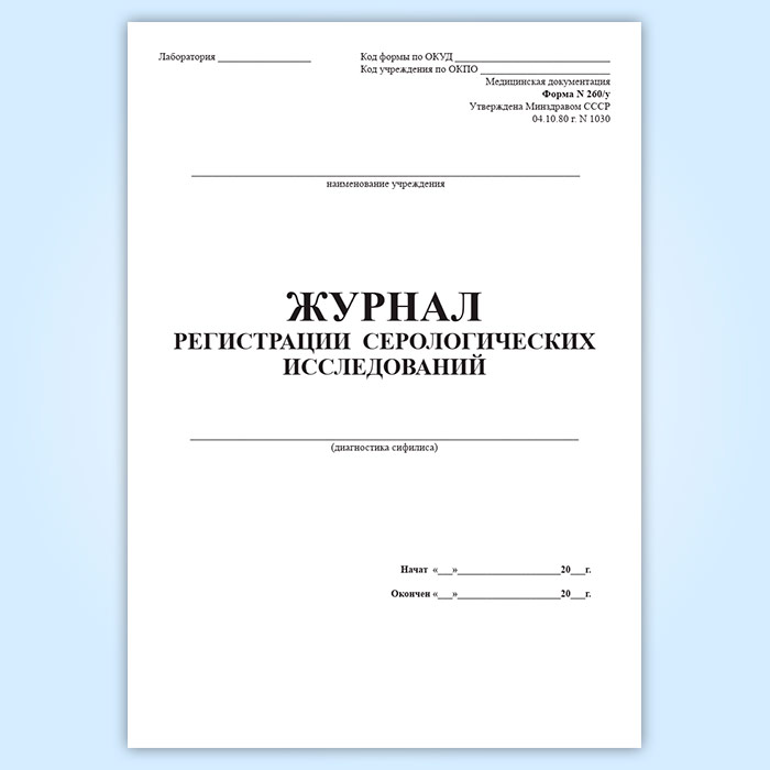 Журнал регистрации серологических исследований (диагностика сифилиса) (форма 260/у) в Бердске купить