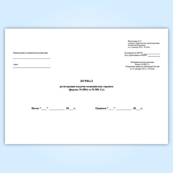 Журнал регистрации выдачи медицинских справок (форма № 086-2/у) в Бердске купить