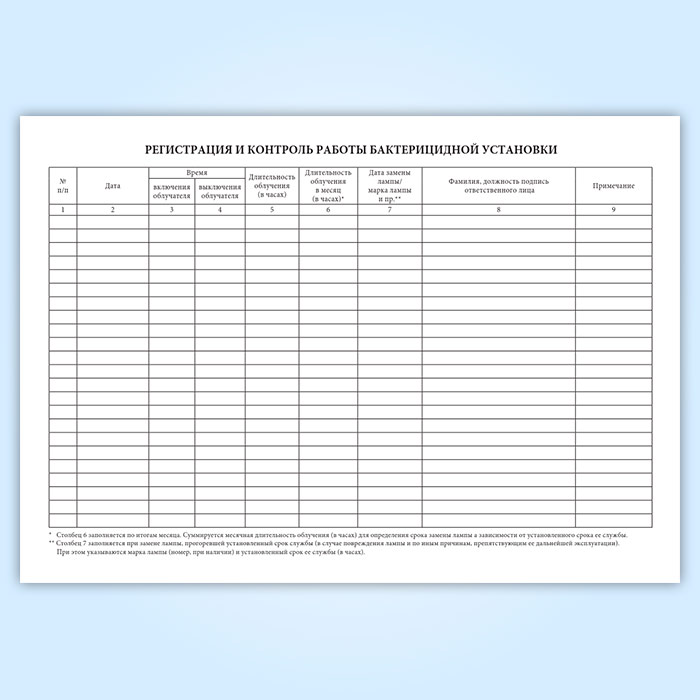 Журнал регистрации и контроля ультрафиолетовой бактерицидной установки (А4) в Бердске купить