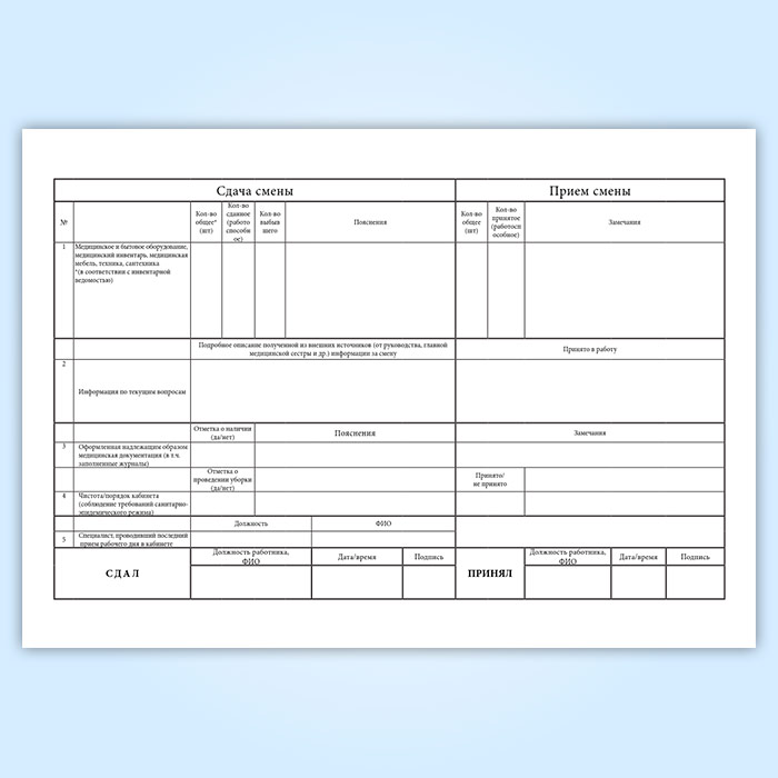Журнал приема-передачи смен (для мед.персонала) в Бердске купить