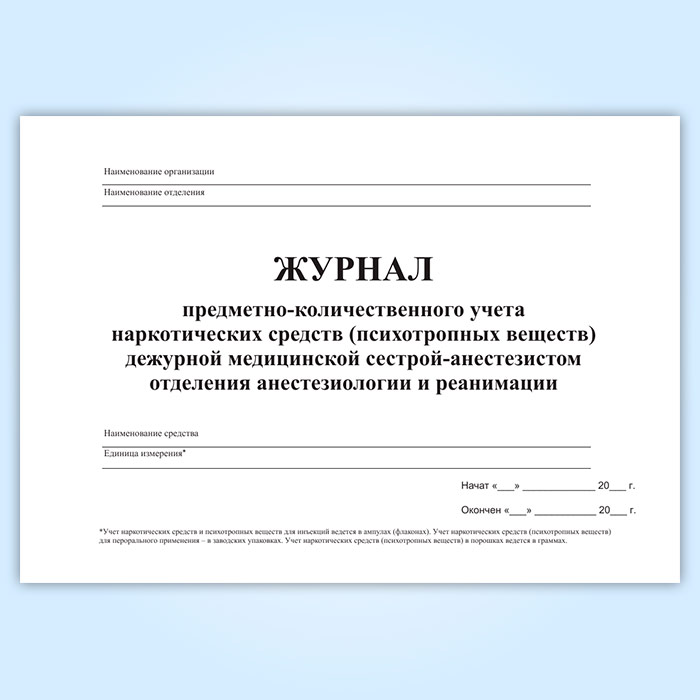 Журнал предметно-количественного учета наркотических средств (психотропных веществ) дежурной медицинской сестрой-анастезистом отделения анастезиологии и реанимации в Бердске купить