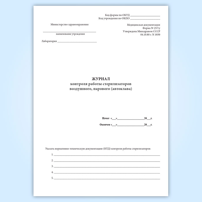 Журнал контроля работы стерилизаторов воздушного, парового (автоклава) (форма 257/у) в Бердске купить