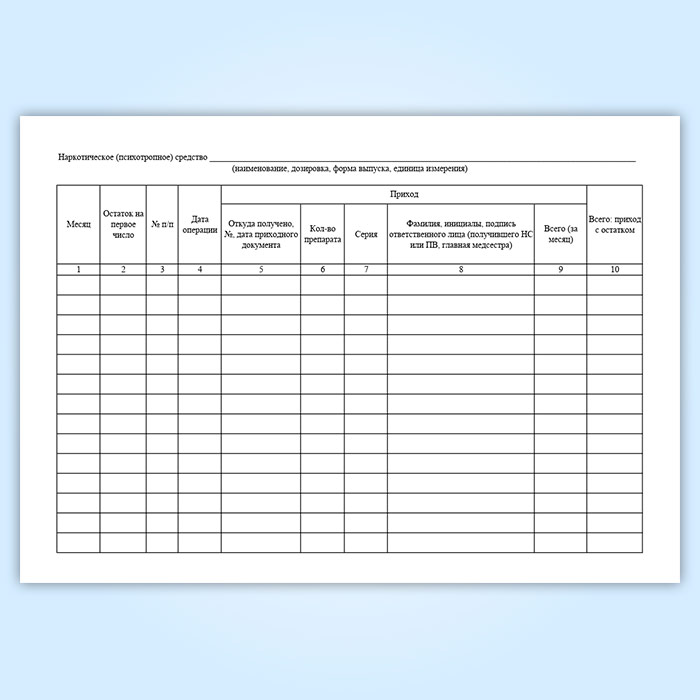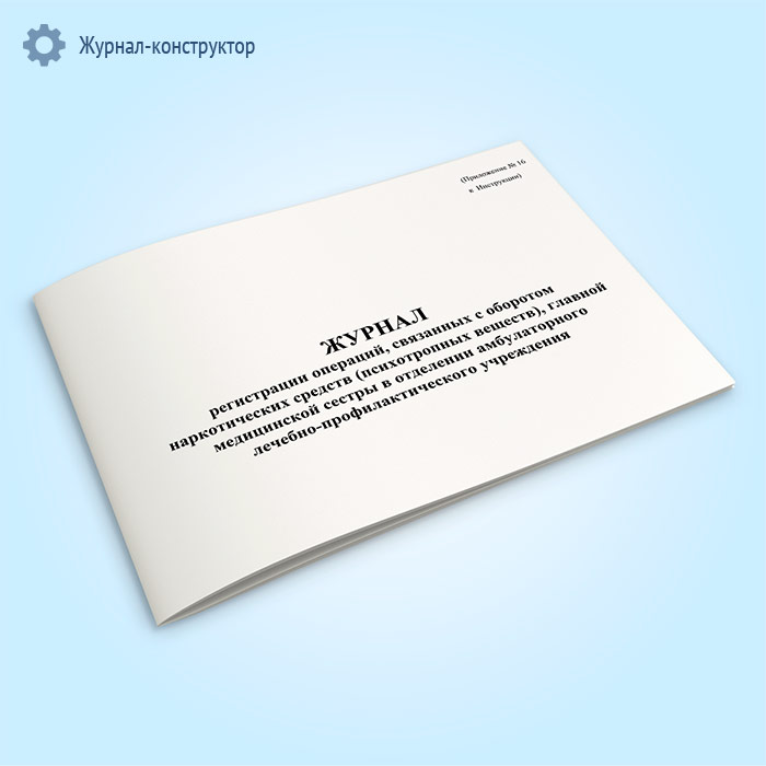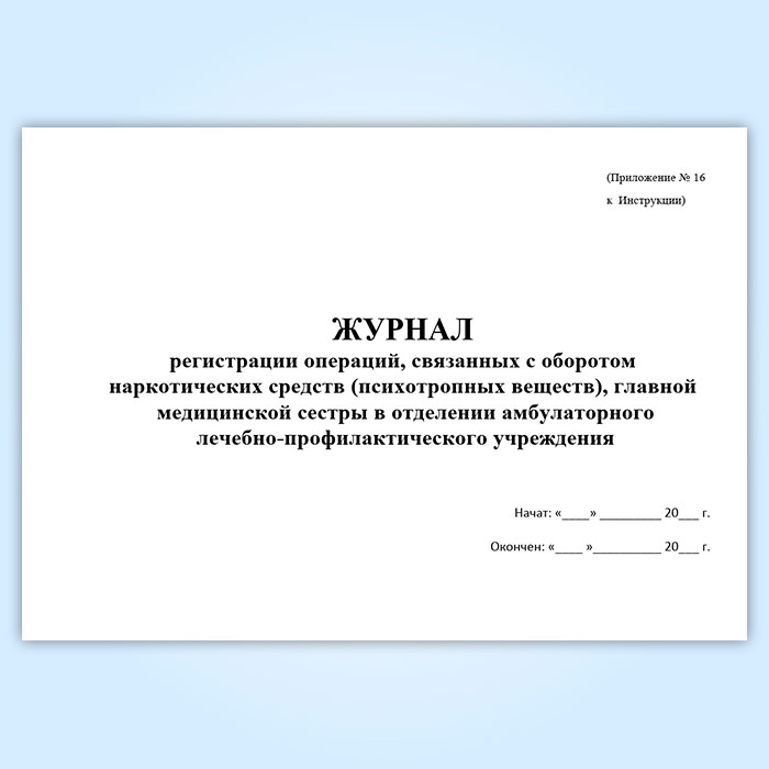 Журнал регистрации операций, связанных с оборотом наркотических средств (психотропных веществ), главной медицинской сестры в отделении амбулаторного лечебно-профилактического учреждения в Бердске купить