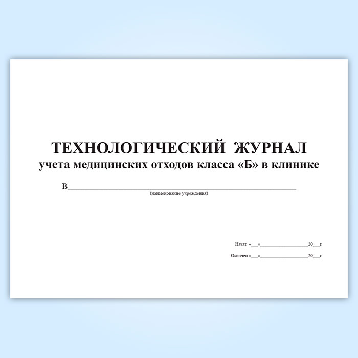 Технологический журнал учета медицинских отходов класса Б в клинике в Бердске купить