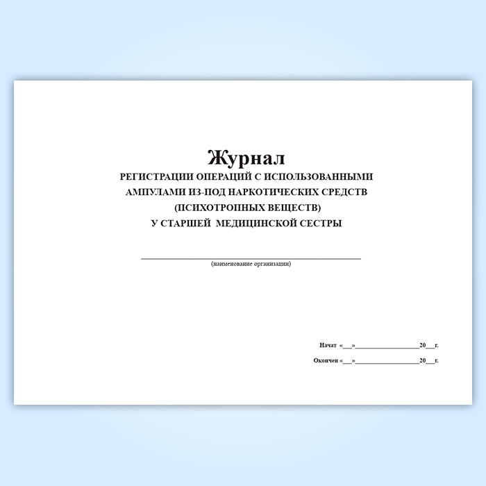Журнал регистрации операций с использованными ампулами из-под наркотических средств (психотропных веществ) у старшей медицинской сестры в Бердске купить