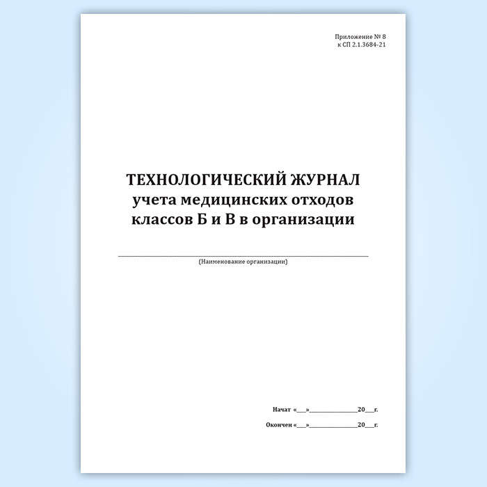 Технологический журнал учета медицинских отходов классов Б и В в организации в Бердске купить