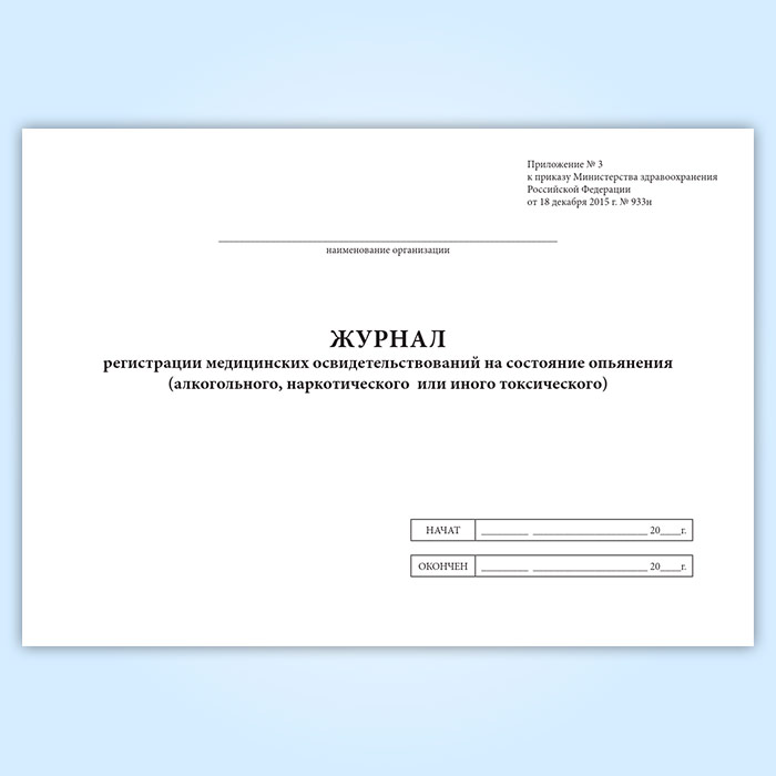 Журнал регистрации медицинских освидетельствований на состояние опьянения (алкогольного, наркотического или иного токсического) в Бердске купить