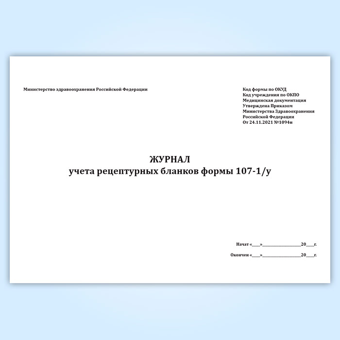 Журнал учета рецептурных бланков формы 107-1/у (новый) (Приказ Минздрава России от 24.11.2021 N 1094н) в Бердске купить