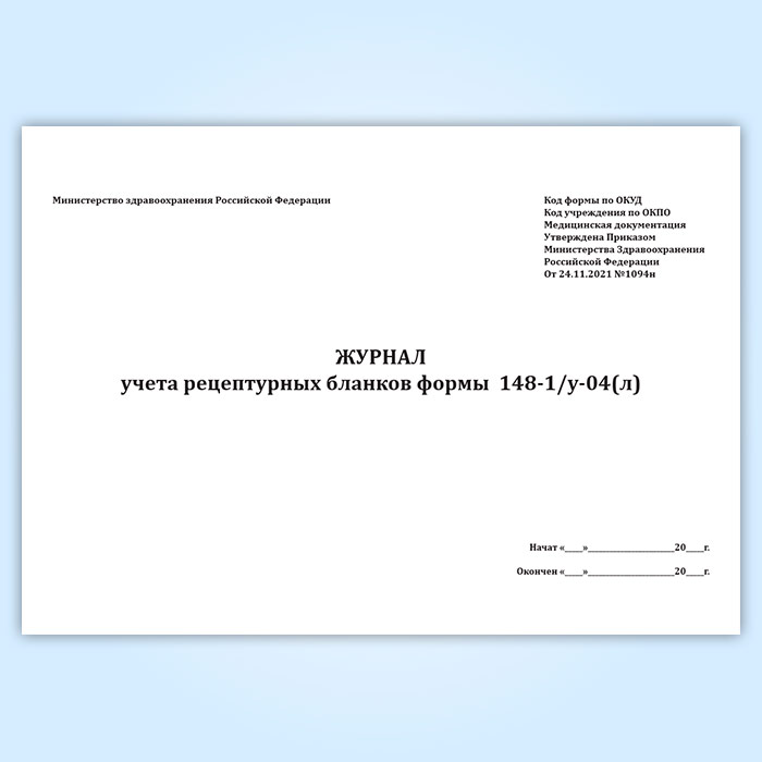 Журнал учета рецептурных бланков формы 148-1/у-04(л) (новый) (Приказ Минздрава России от 24.11.2021 N 1094н) в Бердске купить