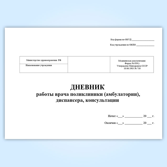 Дневник работы врача поликлиники (амбулатории), диспансера, консультации (форма 039/у) в Бердске купить