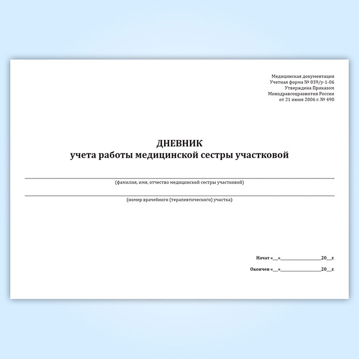 Дневник учета работы медицинской сестры участковой (форма 039/у-1-06) в Бердске купить