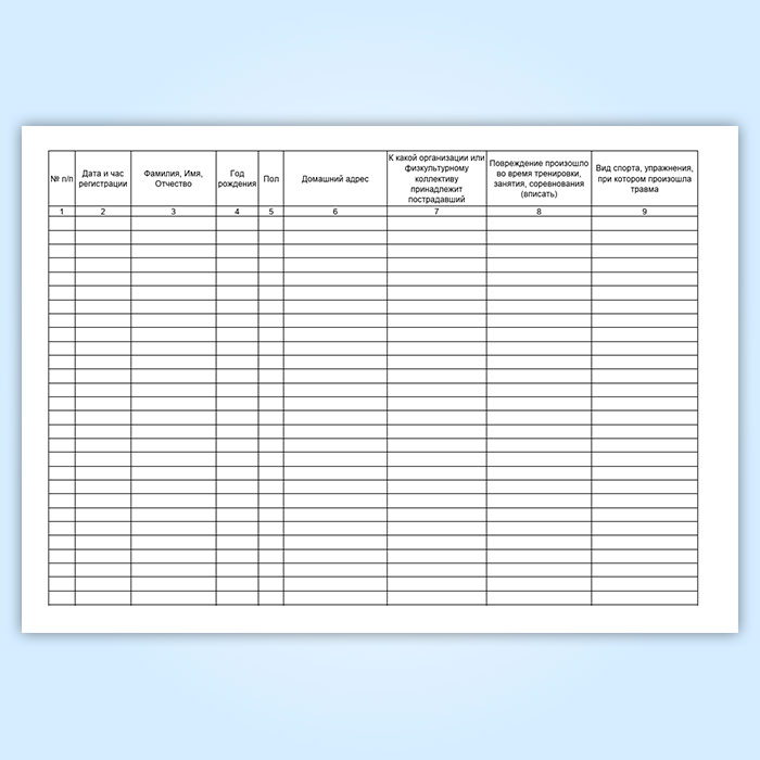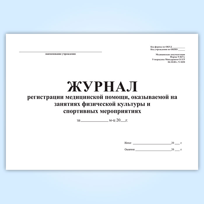 Журнал регистрации медицинской помощи, оказываемой на занятиях физической культуры и спортивных мероприятиях (форма 067/у) в Бердске купить