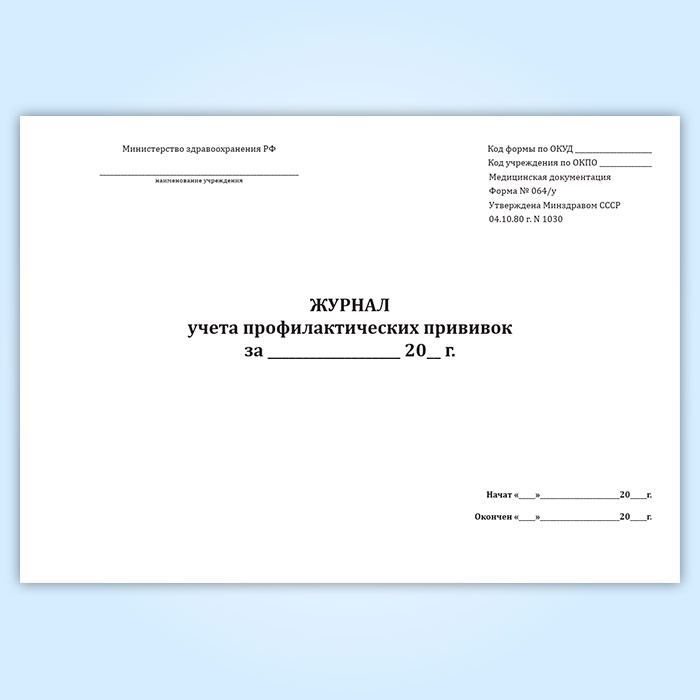 Журнал учета профилактических прививок (форма № 064/у) в Бердске купить